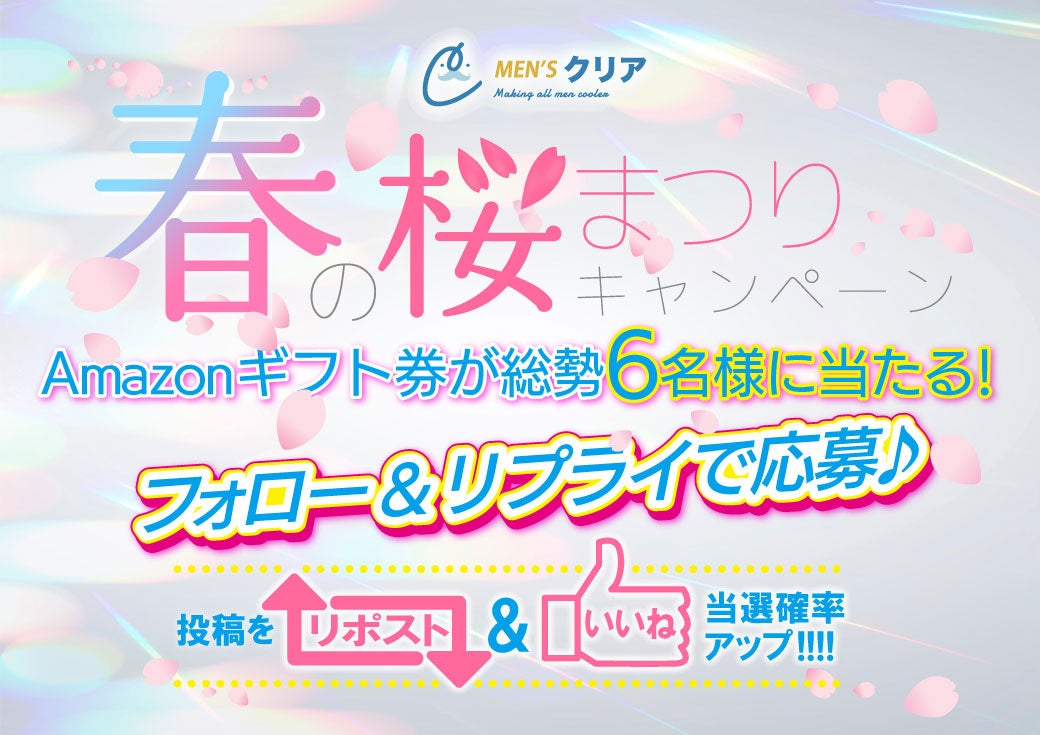 株式会社クリア(本社:東京都渋谷区、代表取締役社長:勝沼 潤)が運営するメンズ脱毛サロン「メンズクリア」は、メンズクリア公式Xにて2024年4月16日(火)から「春の桜まつりキャンペーン第2弾」を実施いたします。