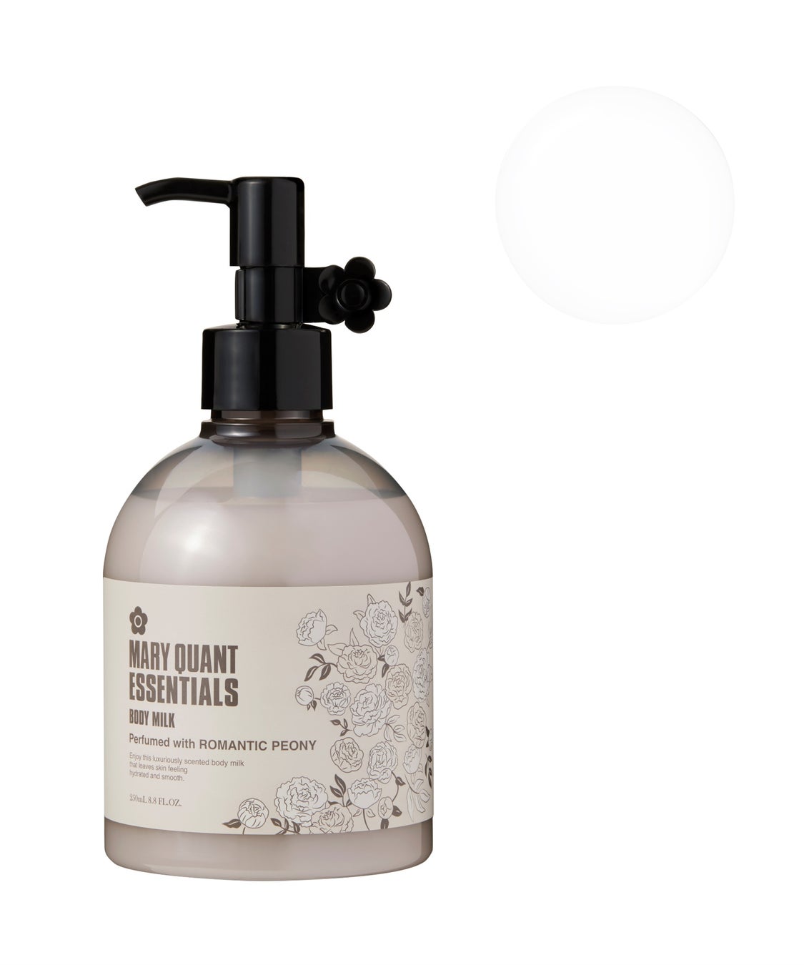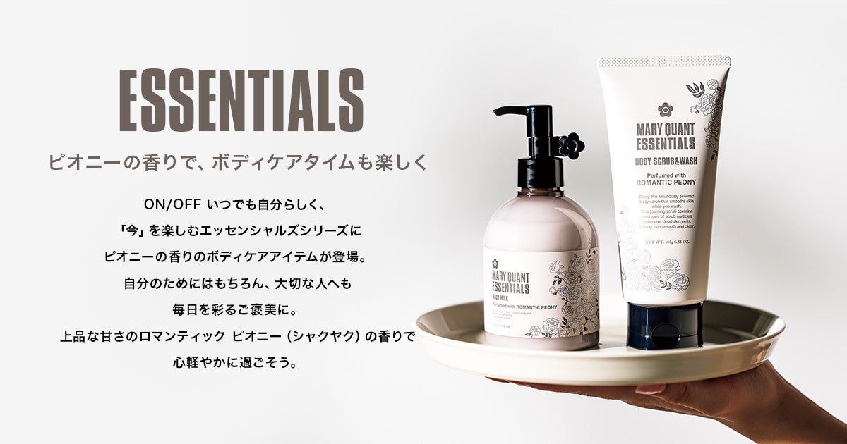 『MARY QUANT ESSENTIALS』は、オフタイムの充実を提供したい、そんな想いから誕生したシリーズ。生活により密着し、年齢、性別問わず愛されるもの作りを目指しアイテムを展開しています。今回は新たに、爽やかな甘い香りただよう2種類のボディケアアイテム『ボディ スクラブ&ウォッシュ ロマンティック ピオニー』と『ボディ ミルク ロマンティック ピオニー』が登場いたします。