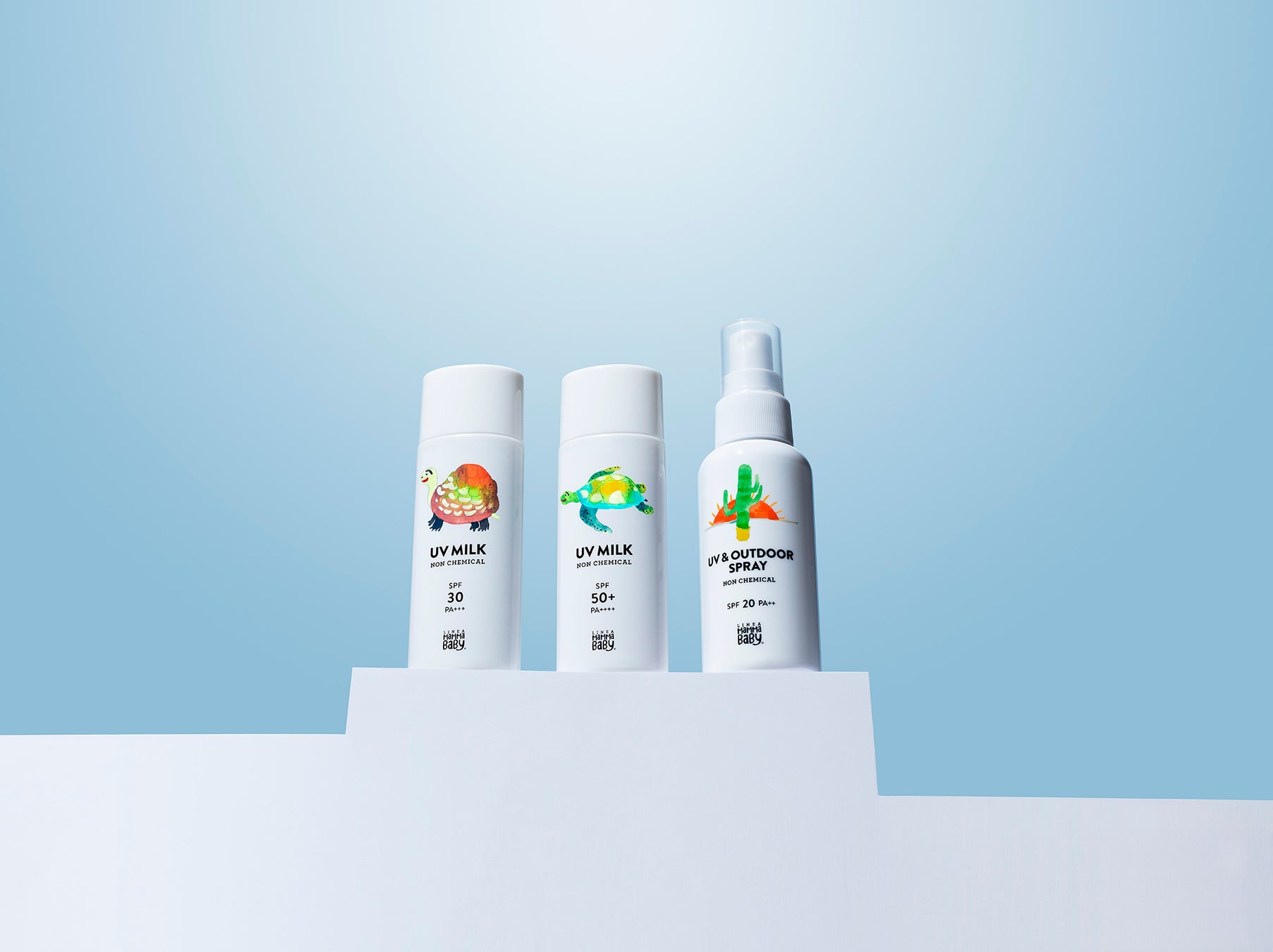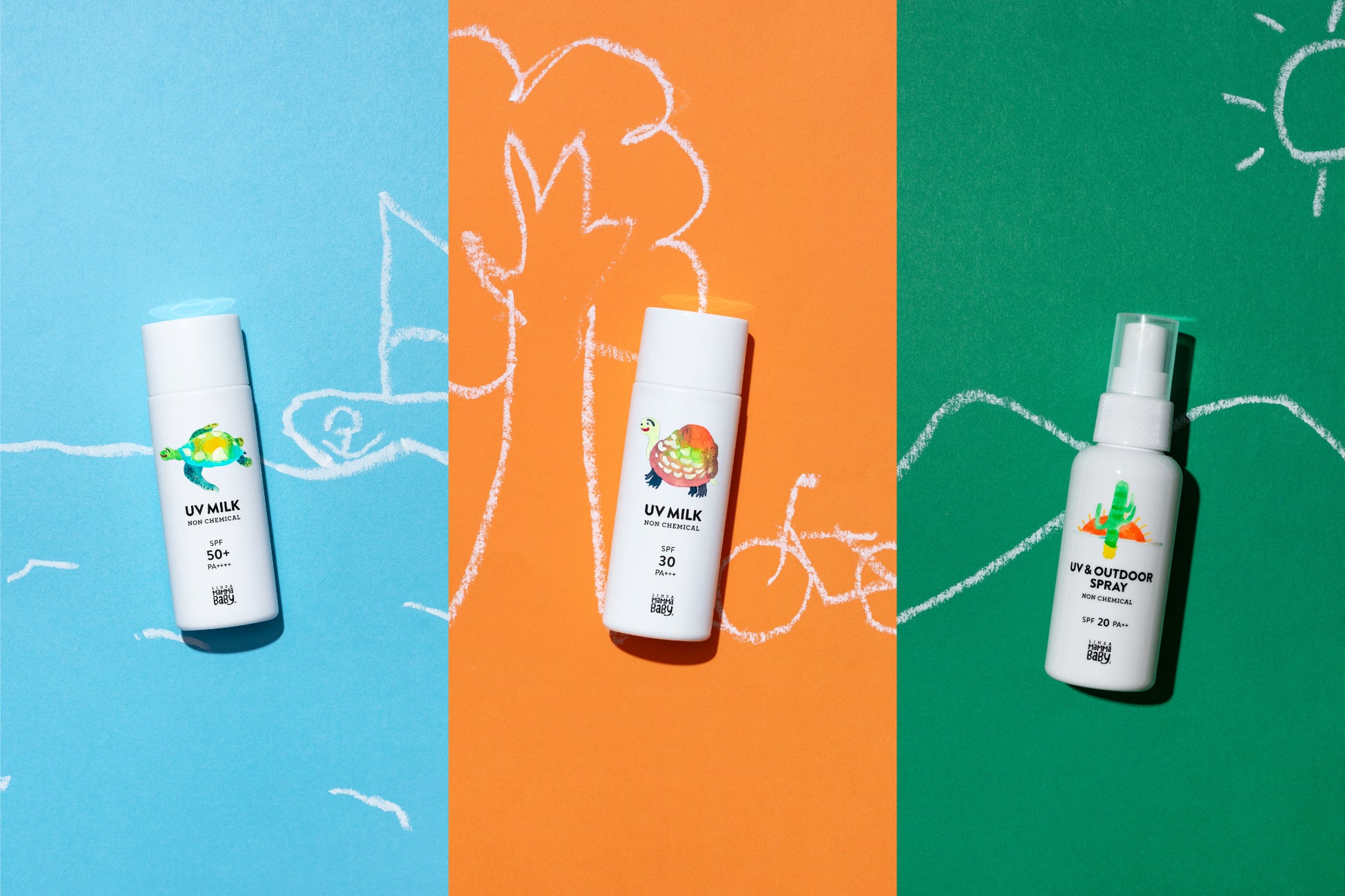 海洋生態系にも敏感な素肌にもやさしい、ママベビーのUVシリーズ。