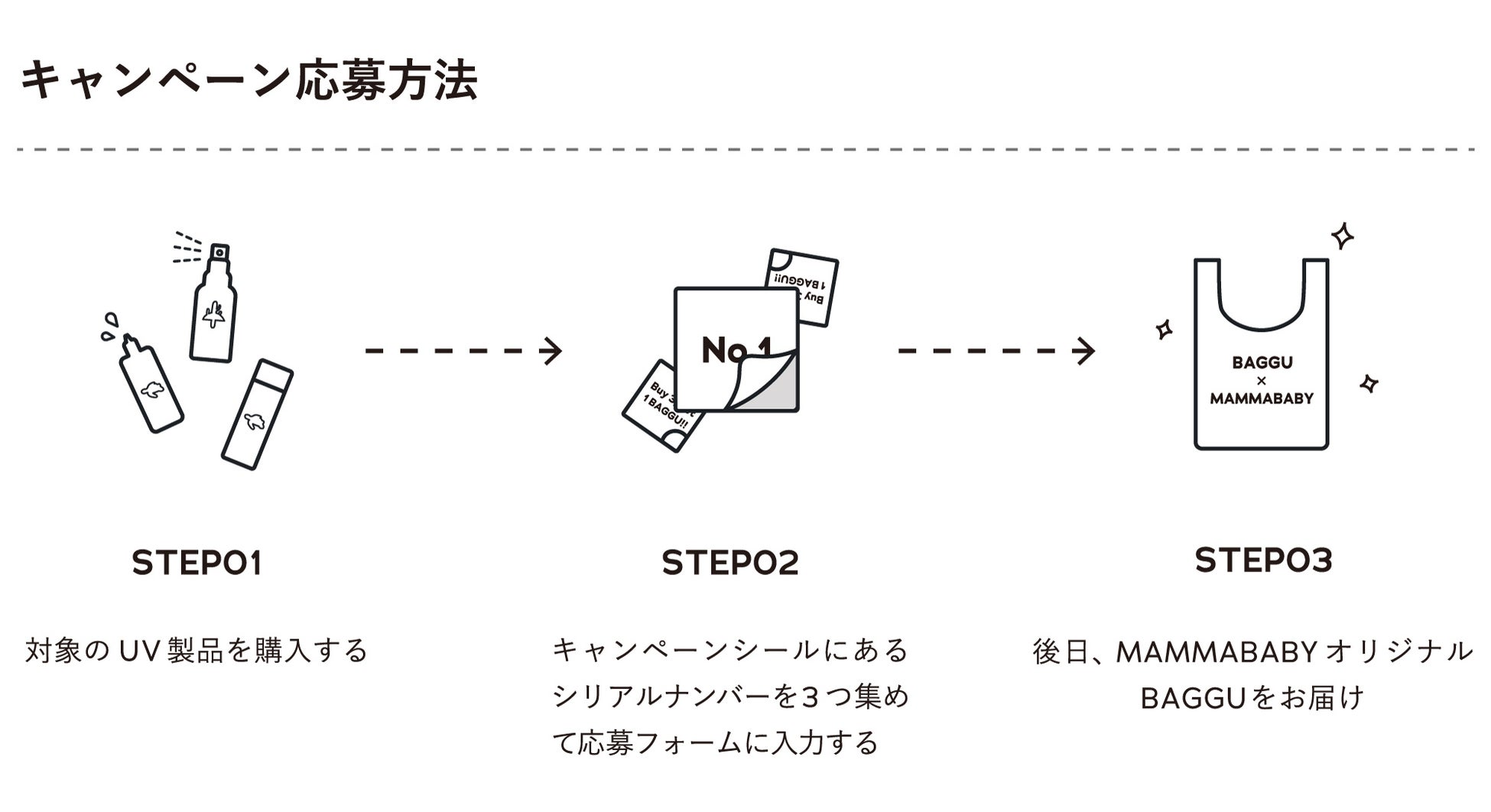 ママベビーのUVシリーズを3本ご購入いただいた方全員に、ママベビーオリジナルBAGGUをプレゼント。
