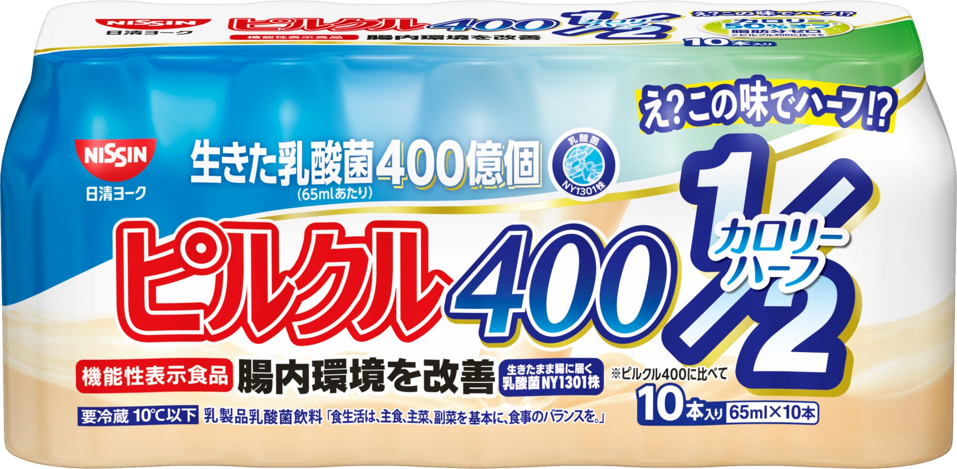 「ピルクル400 カロリーハーフ (65ml×10)」は、「ピルクル」ならではのコクのあるおいしさはそのままに、「ピルクル400」に比べてカロリーを50%オフしました。