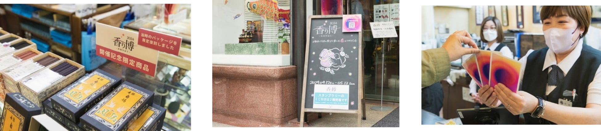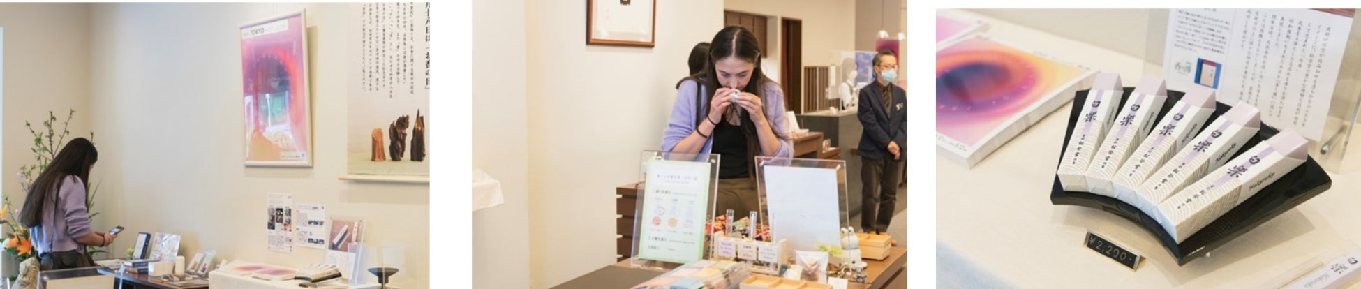 参加店舗では、華道、茶道と並び日本の三大芸道の一つである「香道体験」や自分だけのオリジナルが作れる「匂袋づくり」などのワークショップ開催、老舗のアーカイブを復刻した記念商品などの発売、香りにまつわる歴史資料の展示などを展開しています。