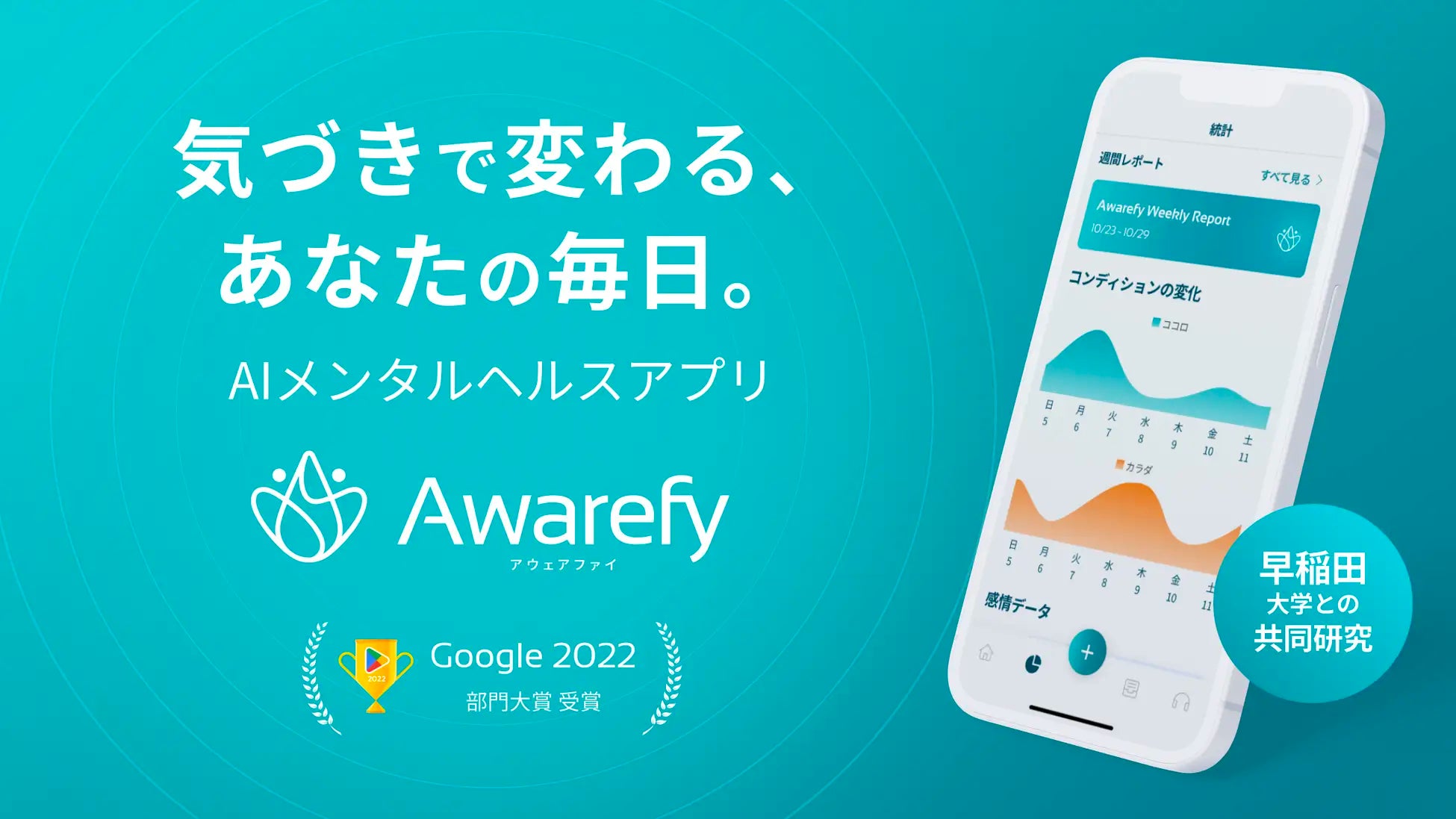 Awarefyは「気づきで変わる、あなたの毎日。」をコンセプトに、2020年のリリース当初から多くの方々にご愛用いただいています。昨年以降、AIの技術を積極的に取り入れ、傾聴に特化したAIチャットや、問題解決に使えるAIコーチングなど、心理学とAIの最新技術を掛け合わせた唯一無二のアプリとして、ご利用者様のメンタルヘルスに寄り添った機能提供を行っています。