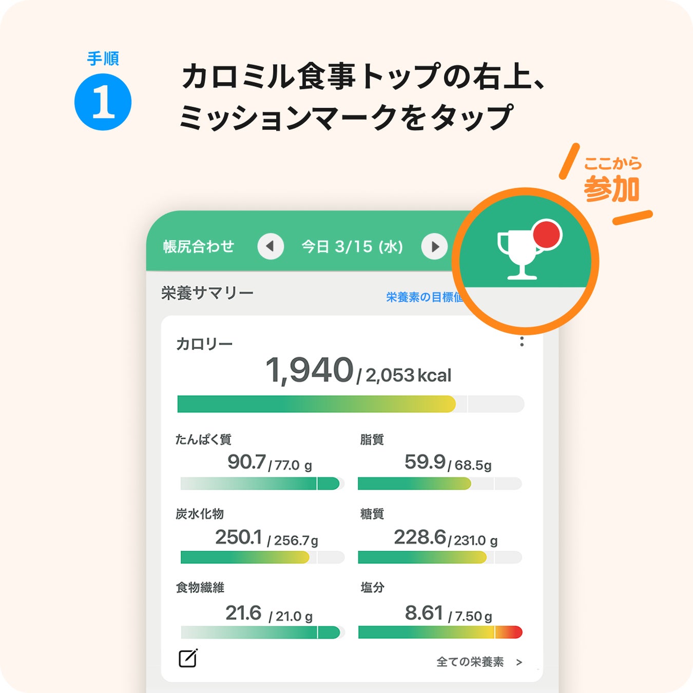 詳しくは、カロミルアプリ内新機能「ミッション」からご確認ください。