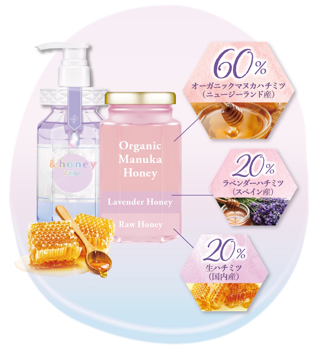 &honey独自のハチミツ美容とカラーケア成分*2の融合により、鮮やかな髪色をキープしながら、キューティクルケアを叶えます。