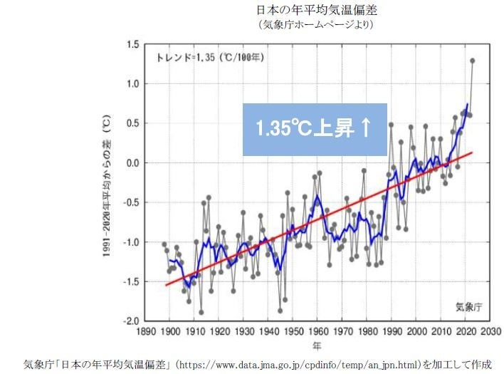 日本の平均気温は長期的にはこの100年で1.35℃上昇していると言われています。昨年、2023年の日本の夏の全国平均気温は過去最高を更新、平年値との差も過去最大となり、最高気温40度を観測する地域もありました。また気象庁によると、地表に到着する紫外線量についても1990年の観測開始以降、増加が続いています。