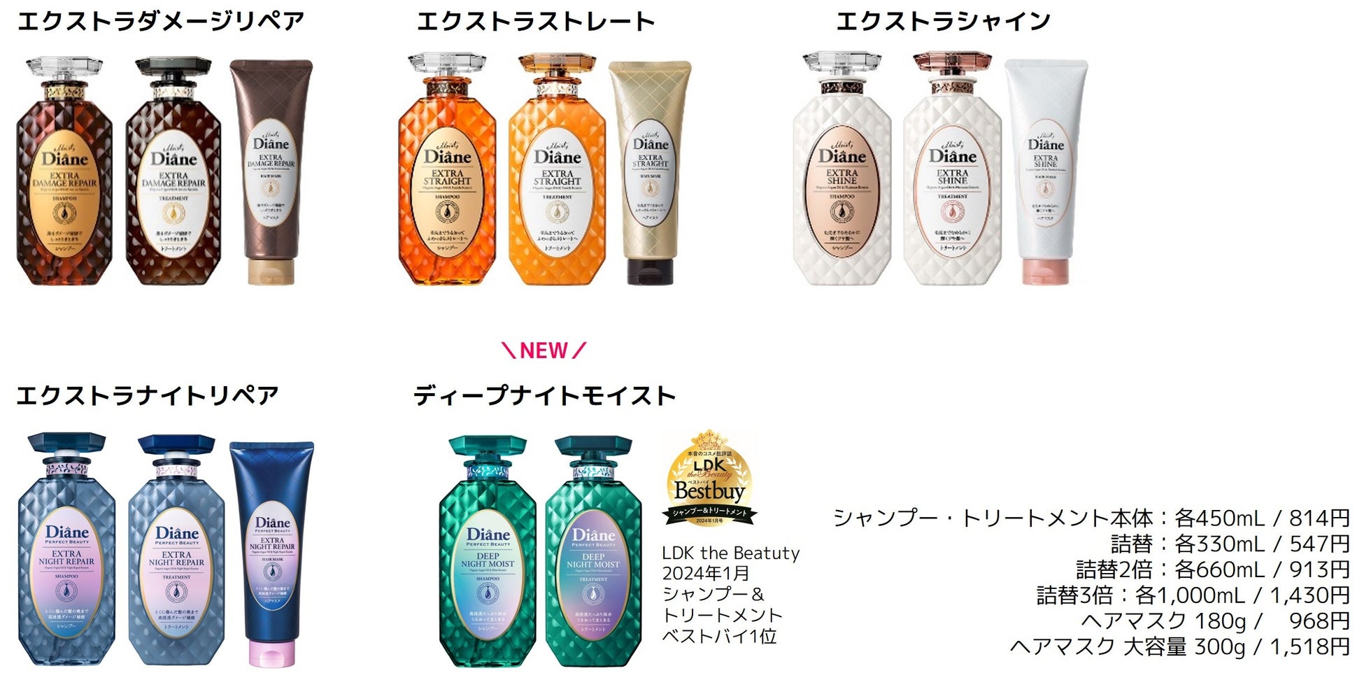 今年は環境に優しい詰め替えタイプもご用意。サステナブルな意識を高く持つ方が増えている中で、ダイアンは環境へのやさしさも考え、各シリーズで詰め替えタイプを展開中です。