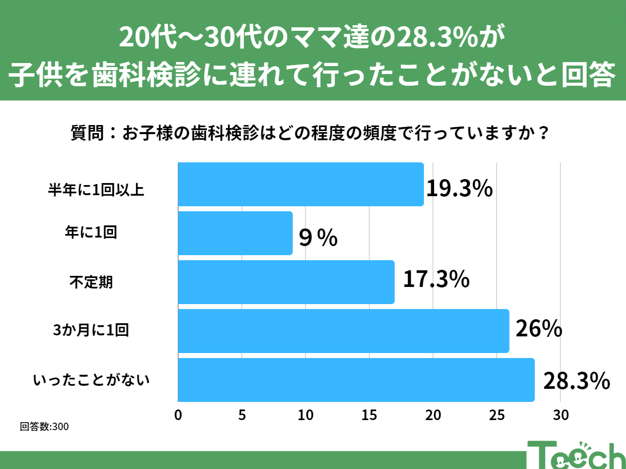20代から30代の母親を対象に、「お子様の歯科検診はどの程度の頻度で行っていますか?」というアンケートを実施しました。
