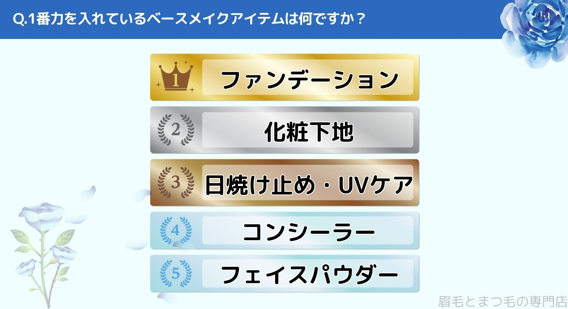 新居浜市で眉毛サロンを探している方必見!|1番力を入れているベースメイクアイテムについて四国エリアの人にアンケート
