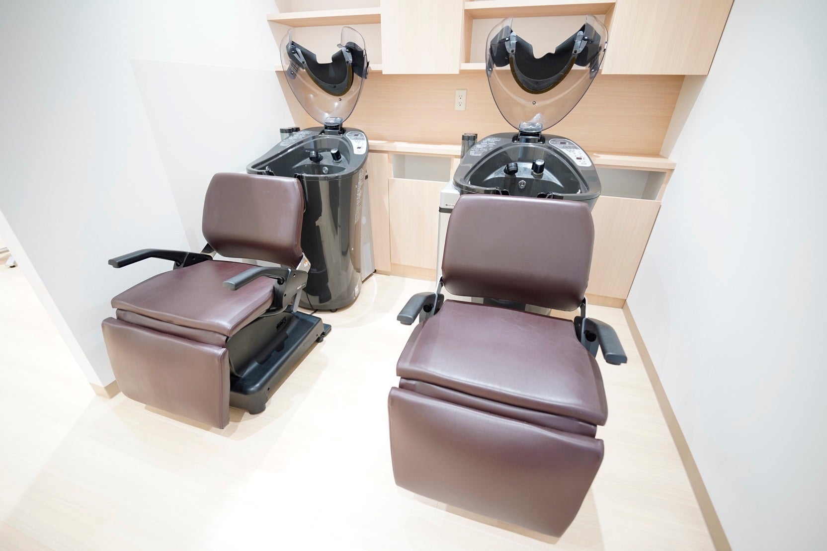 施術後は、セルフブローブースで、自分で髪を乾かしたり、スタイリング剤などを自由に使用