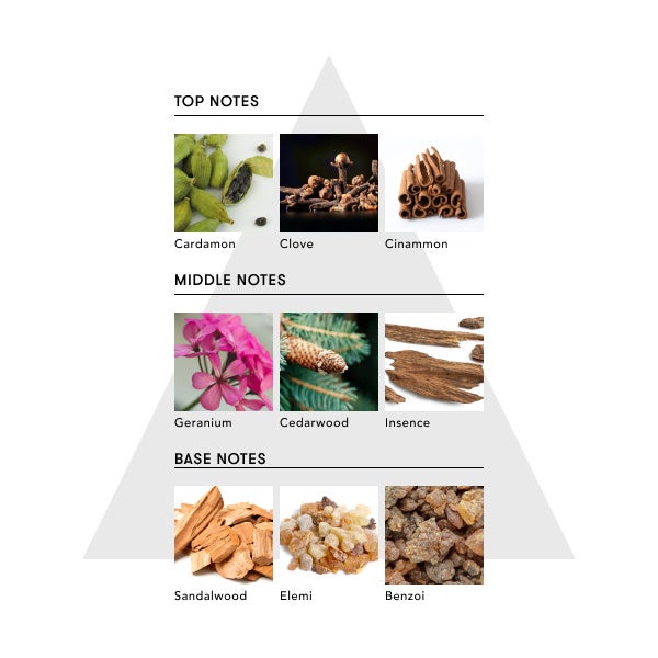 安らぎをもたらし、直感力を上げるサンダルウッドが主役。濃厚で深みのあるスパイシーなシナモンが潜み、個性を引き立て、質の高い香をパーソナルに纏うことで、人生の幸福度を高める。