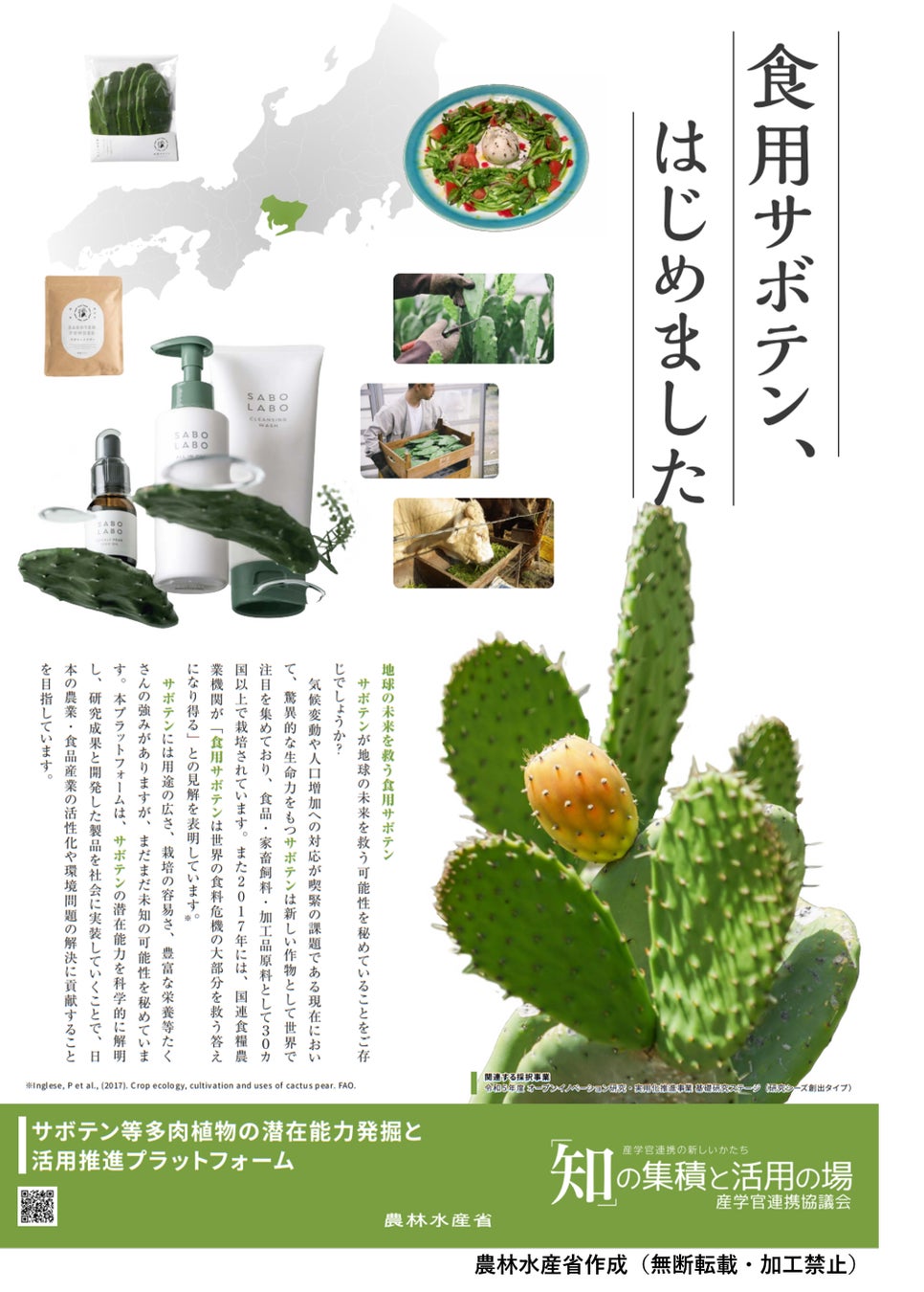 国内でもサボテンに対する期待値が高まっており、農林水産省が食用サボテンの認知拡大を促進するため、上のポスターを作成しました。