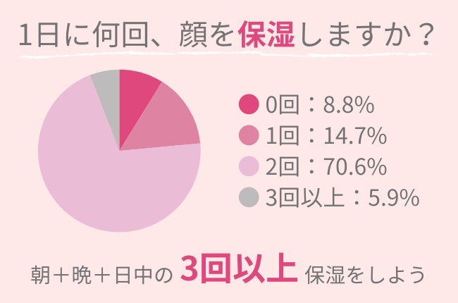 調査の結果、70.6%の方が1日に2回、保湿をすることが分かりました。