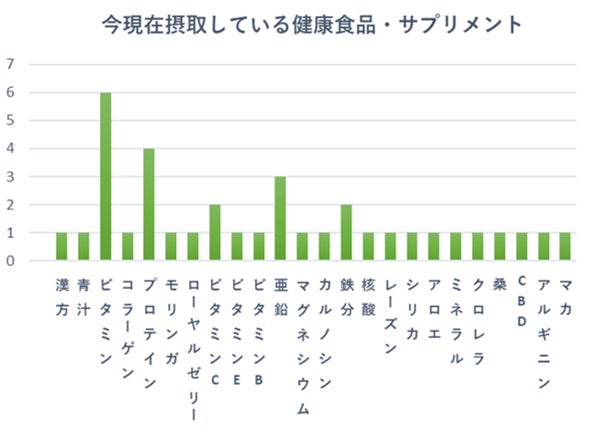 摂取している健康食品やサプリメントの種類も多岐にわたり、個々の健康意識やニーズに応じて様々な選択が行われていることが示唆されます。しかし、未摂取者の割合が高いことから、健康食品やサプリメントに対する理解が深まれば、健康食品(サプリメント)のニーズもより高まっていくと考えられます。