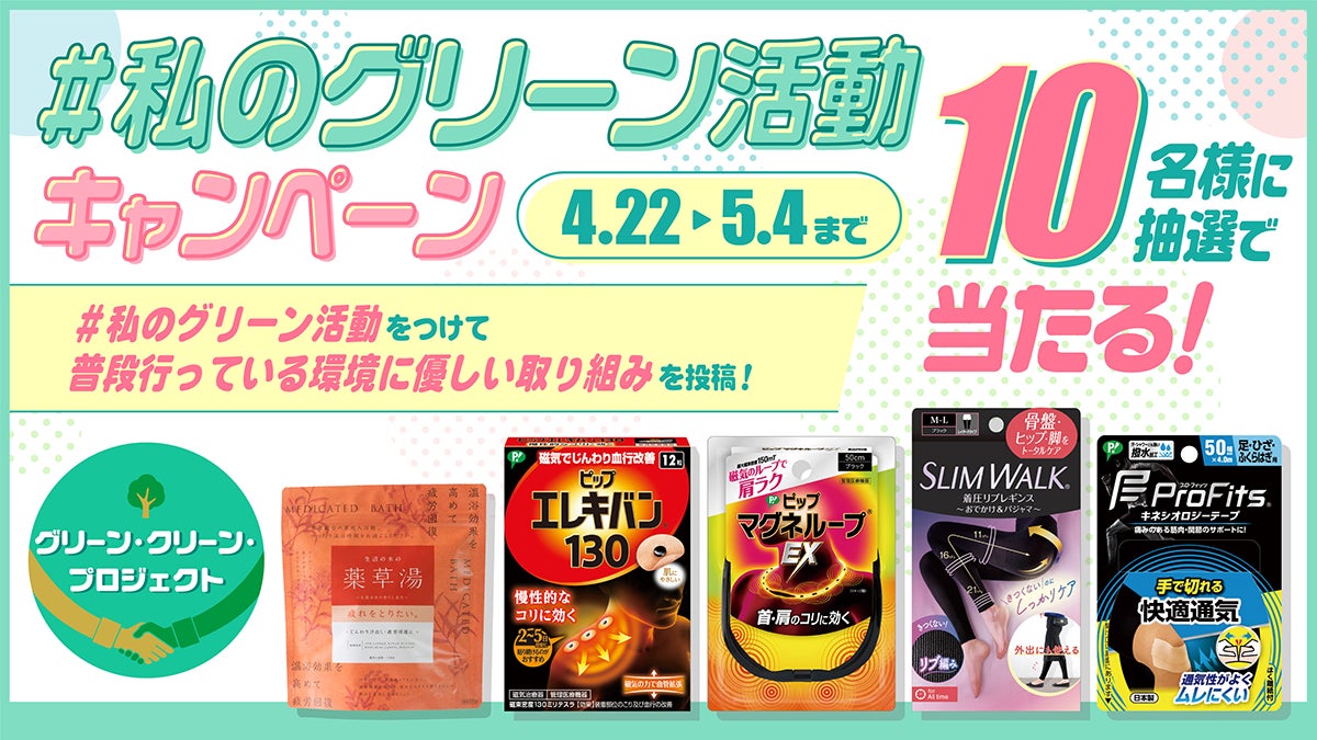 ピップ(株)の公式Xでは、(株)生活の木とコラボして、4月22日(月)~5月4日(土)まで、生活者の皆さまが普段行っている環境に優しい取り組みを募集する、「#私のグリーン活動」キャンペーンを実施します。