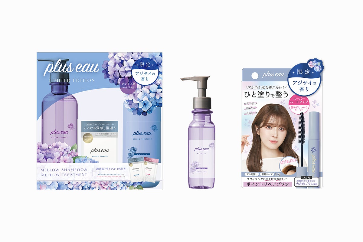とろける質感と感動の指通りへ導く「メロウシャンプー&メロウトリートメント」、熱ダメージケアに着目した洗い流さないトリートメント「メロウオイル」、アホ毛ケアスティック売上No.1*²のポイントリペアシリーズから「ポイントリペア スーパーハード」が紫陽花のお花をイメージした限定デザインと香りを纏い、華やかに彩ります。