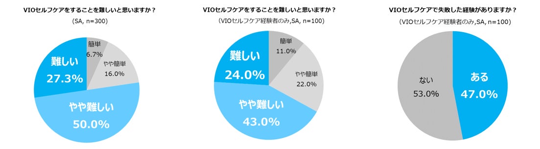 VIOセルフケア経験者のみに聞いた場合でも「難しい」「やや難しい」と回答した人が過半数の67.0%でした。