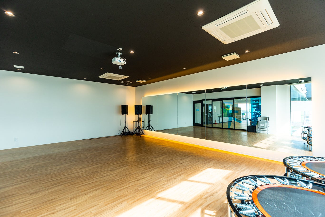 大画面の映像と音で、ダンス・ヨガ等のバーチャルレッスンができるフィットネススタジオ「FIT-AERO」や対面レッスンも利用できます。国内でも人気のラディカルフィットネスを導入し、シンプルなプログラムでスタジオでのワークアウトを体感。