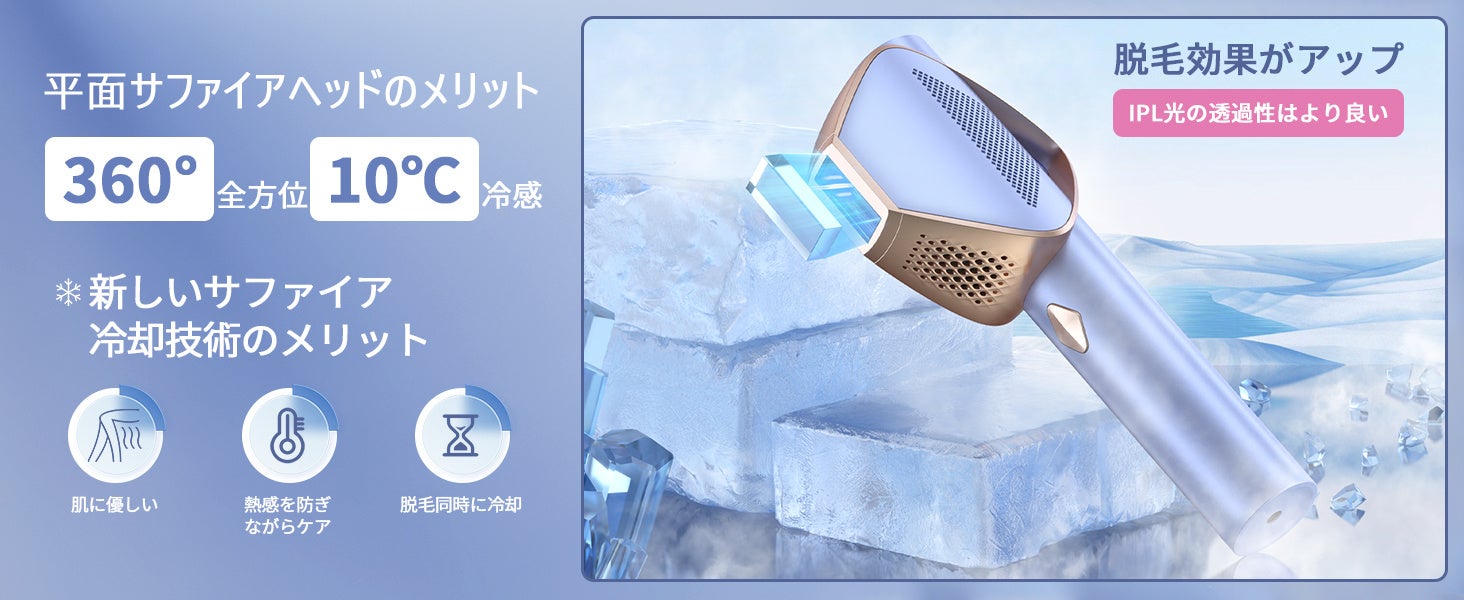 【お肌にやさしいIPL技術と先進のサファイア瞬間冷却技術で、無痛脱毛を実現】