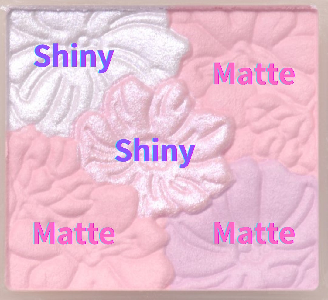 右上・左下:青みピンク 青み寄りのマットピンクでほわっとピュアな印象に