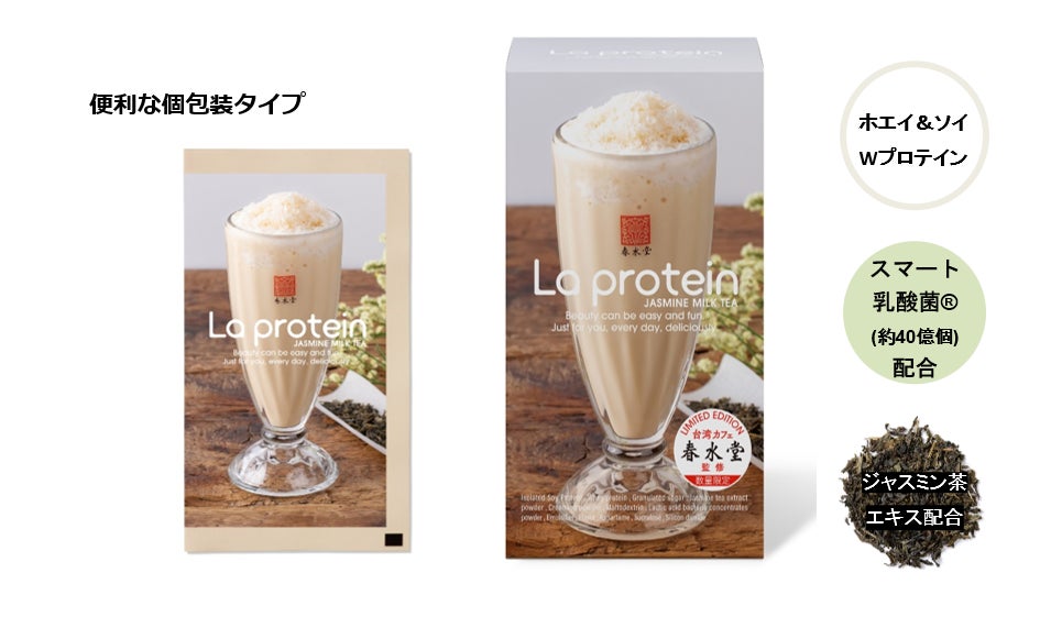 美味しさと栄養にこだわったビューティー・プロテイン「La protein(ラ プロテイン)」から「ジャスミンミルクティー味」が限定新登場。
