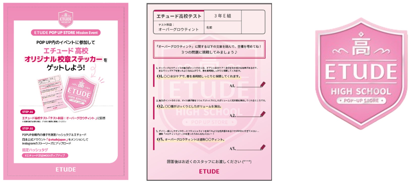 POPUP内のイベントに参加して、 エチュード高校オリジナル校章ステッカーをゲットしよう♡