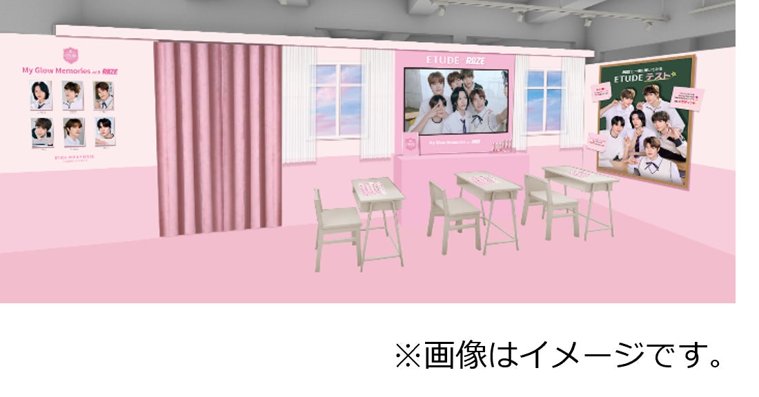 エチュードの新ミューズRIIZEの「オーバーグロウティント」ビジュアル撮影現場を再現した「エチュード高校」が、渋谷MODIに突如出現!