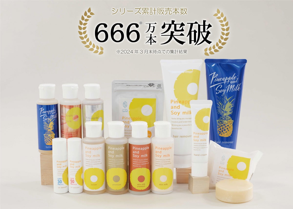 株式会社鈴木ハーブ研究所が研究開発、販売している体毛ケア*¹化粧品「パイナップル豆乳シリーズ」がシリーズ累計販売本数666万本*²を突破いたしました。
