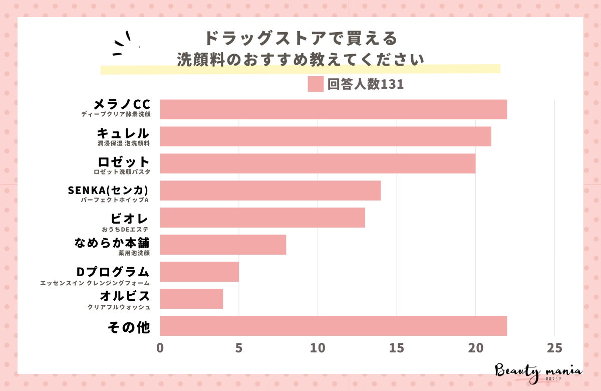 アンケート内容:ドラッグストアで買える洗顔料のおすすめは?