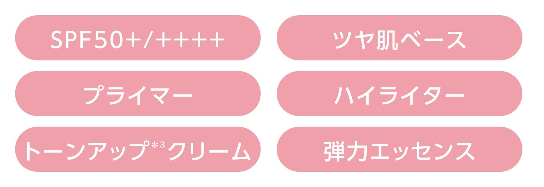 コンパクトな作りながら、UVカット機能、トーンアップ*³ベース、プライマー、ツヤ肌ベース、ハイライター、弾力エッセンスという6つの機能が1つのコンパクトにイン。さっとひと塗りで、ローズカラーが肌の透明感を引き出し、華やかさを添えます。メイク前のUVケア 兼 化粧下地や、ハイライターとしてのポイント使いはもちろん、乾燥やくすみが気になる夕方のメイク直しにも使えるマルチアイテム。手のひらサイズでミニバッグにも収まる、持ち運びにも便利なコンパクトです。