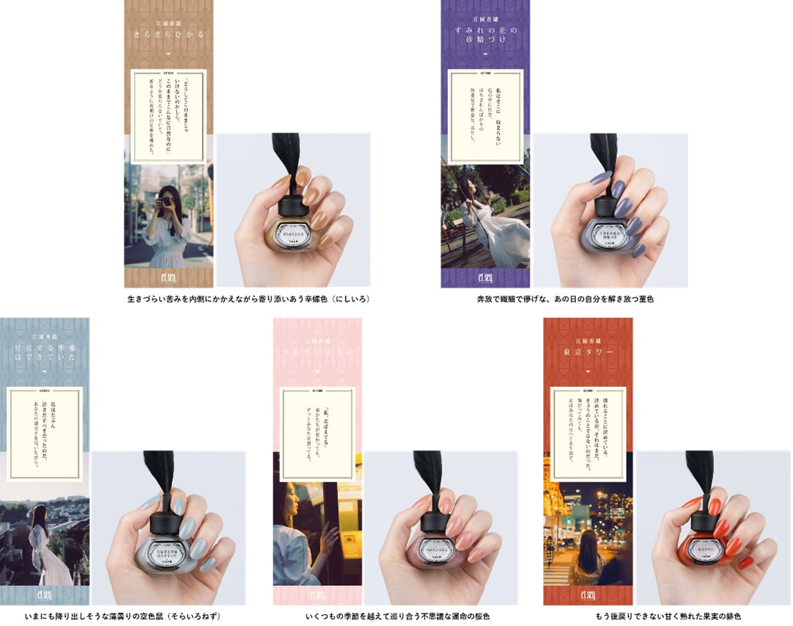 今回発売するのは、『きらきらひかる』『つめたいよるに』『すみれの花の砂糖づけ』『号泣する準備はできていた』『東京タワー』の5作品をもとにした、全5色のネイルポリッシュです。