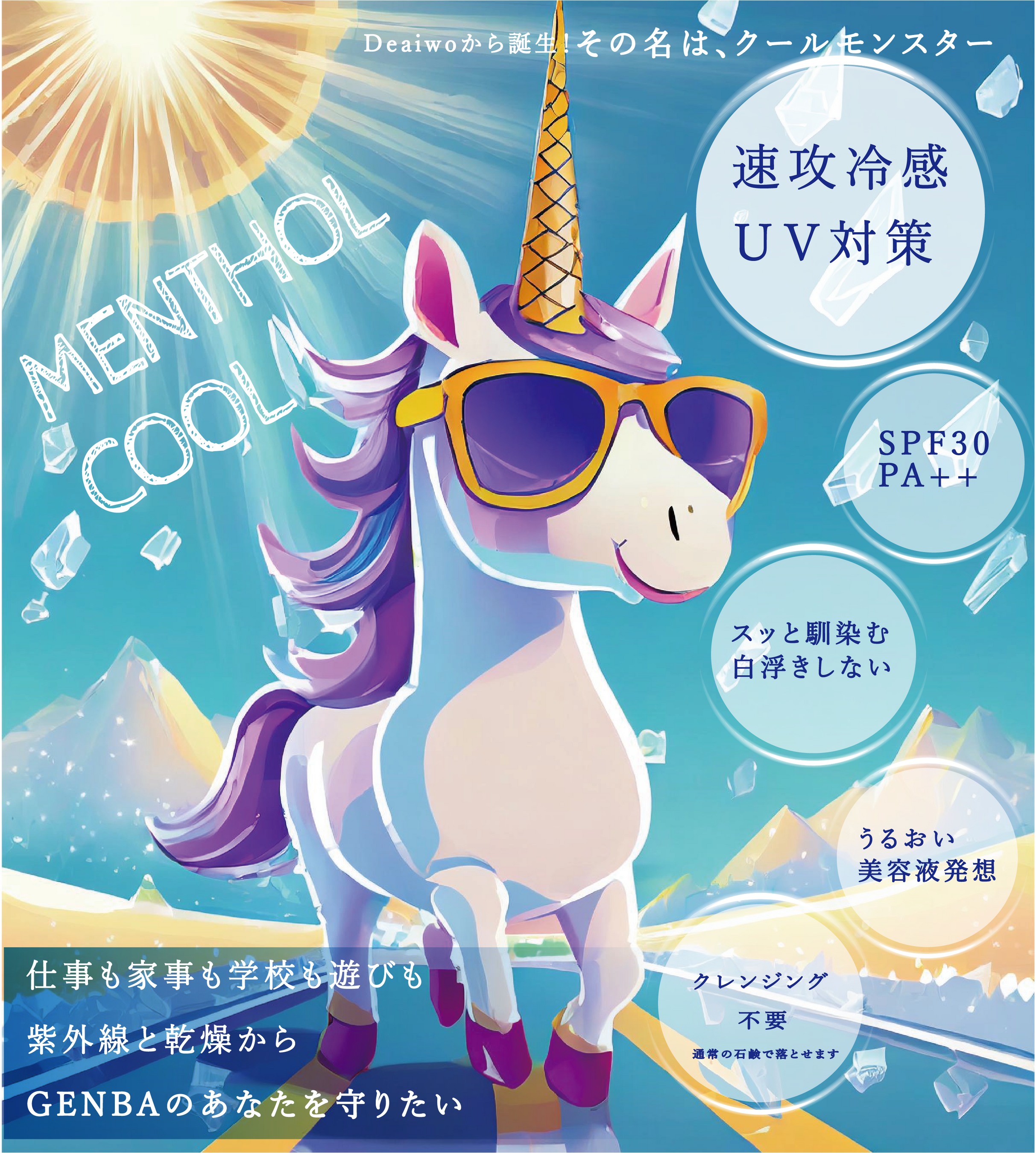 商品最大の特徴は、Deaiwo基準内最大量配合した清涼成分メントールにより、肌に塗った瞬間にクールな冷感と涼しさを感じることができます。クレンジング習慣のない素肌生活を送る人々、とりわけ男性にもお使い頂きやすいようにと、白残りなし、普通の石鹸で落とせるクレンジング不要に仕上げた商品です。