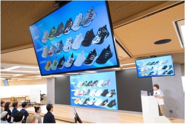 1次審査を通過した5社が会場で商品やサービスを説明。美容/健康部門では、フットウェア小売と修理事業等の事業を行う「株式会社ベネクシー」の、中敷きの厚みを柔軟に調整して足によりフィットさせる機能のついたスニーカ―「Orthofeet YARI・KITA」が、