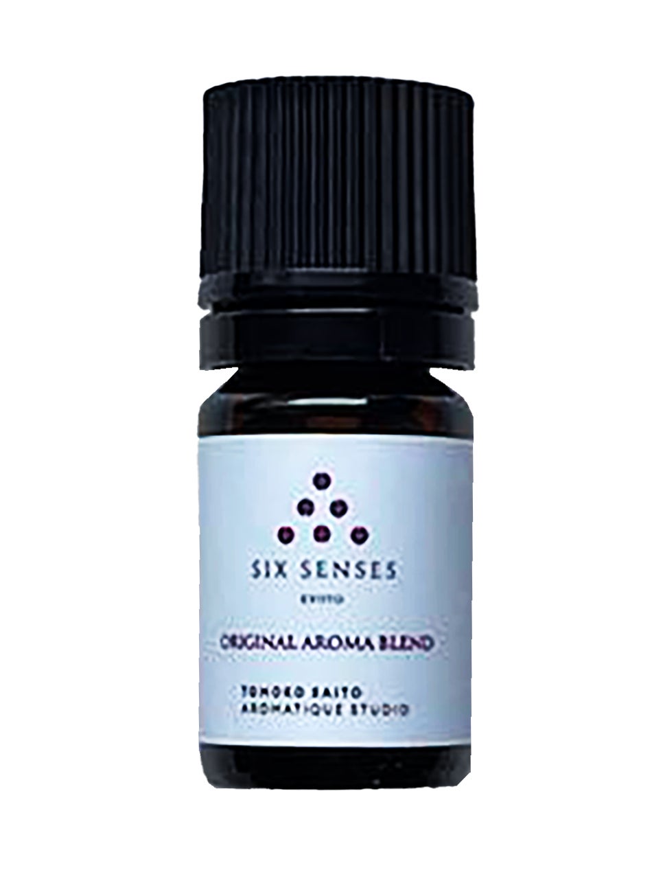 京都に原点を持つ、アロマ調香デザイナー®︎の齋藤智子が、北山杉や檜、柚子などの和精油を含む天然の香りを繊細に重ね、地元京都の文化との調和・融合を大切にする「シックスセンシズ 京都」の世界観を表現しています。