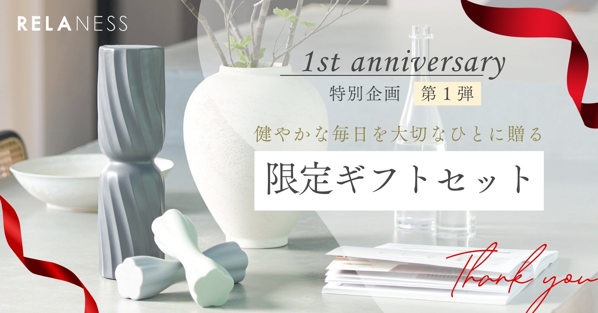 2018年のブランド展開開始から、SNSやカスタマーサポートで既存製品に対するお客様の声を拾い上げ、日本人の体格や考え方、住環境、ライフスタイルに配慮したホームフィットネス / ストレッチ製品を提案し、日本においてトップクラスのEC販売実績を誇るステディジャパン株式会社(本社:東京都新宿区、代表取締役CEO:森由樹)は、ウェルネスブランド「RELANESS」がブランドローンチから1周年を迎えたことを記念し、アニバーサリー特別企画【第1弾】として2024年4月26日(金)より楽天市場にて限定ギフトセットを販売開始いたします。