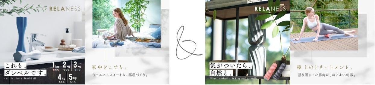 RELANESSはこの1年間で、飾れるぶら下がり健康器「RelaxHang」、飾れるダンベル「CurvyBar」、飾れるストレッチアイテム「ReleaseRoller」というインテリア×フィットネスの高度な調和を実現した“飾れる”シリーズ3製品と、【日本初】のすべり止め構造を採用し(※2)、遊び感覚で有酸素運動を日常に取り入れられる「SlideMat」の計4製品をご提案してまいりました。新型コロナウイルスの流行と落ち着きを経て加速した心身の健康に対する意識の高まりを背景に、「RelaxHang」は発売前より2,000名超の事前購入 希望を集め、発売から1週間で楽天市場の関連ランキング9冠を達成(※3)、また最新製品の「SlideMat」もクラウドファウンディングサイト「Makuake」にてプロジェクト開始からわずか3分で目標金額を達成し、最終的に応援購入金額1,000万円超(応援購入者1,146人)という好実績を獲得しました。