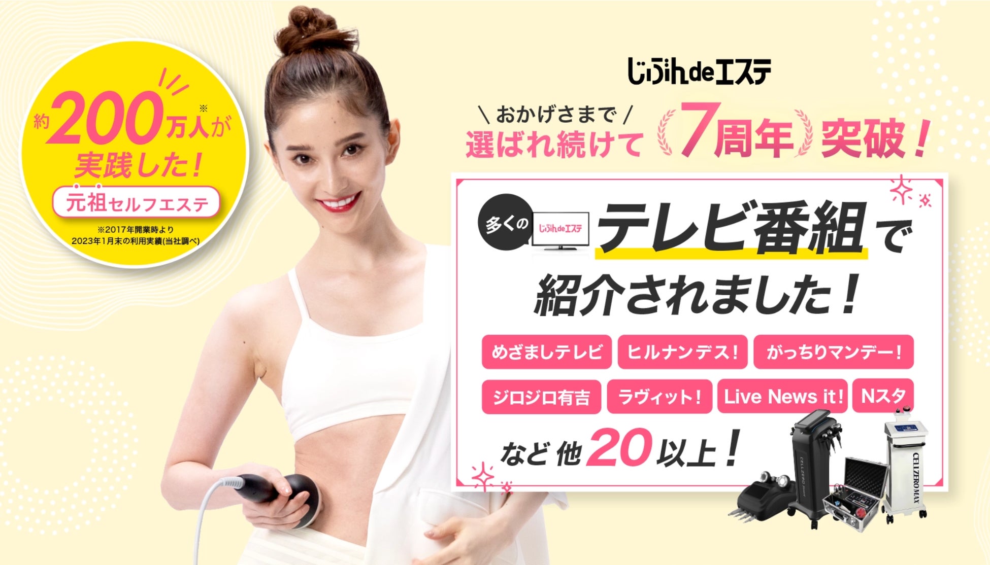 日本テレビ系「キャラ渋滞系旅バラエティー渋滞で行こう!」にて取り上げられた、業界初*定額制セルフエステ「じぶんdeエステ」。より効果実感を高めるためにセルフエステだけでなく、施術のサービスを開始。