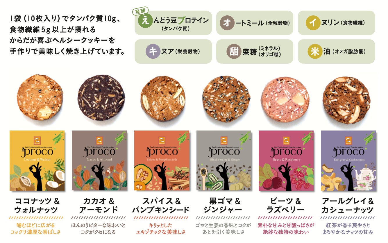 ニューロ・オン株式会社は、発酵えんどう豆プロテインをベースとしたプロテインクッキー『Proco(プロコ)』シリーズ(ハーフサイズ/6種)を東京都江東区の自社工房&店舗にて4月30日より先行販売します。