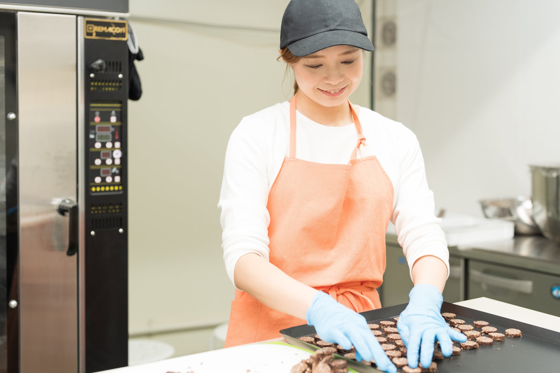 ピープロテインは形が崩れやすい上、ナッツ類をたくさん入れているため、手作業での成形が欠かせません。またえんどう豆の風味を生かした、それぞれの絶妙なバランスの味付けも人の手が欠かせず、江東区北砂の自社工房で生地作りから丁寧に手作業で行い、焼き上げています。
