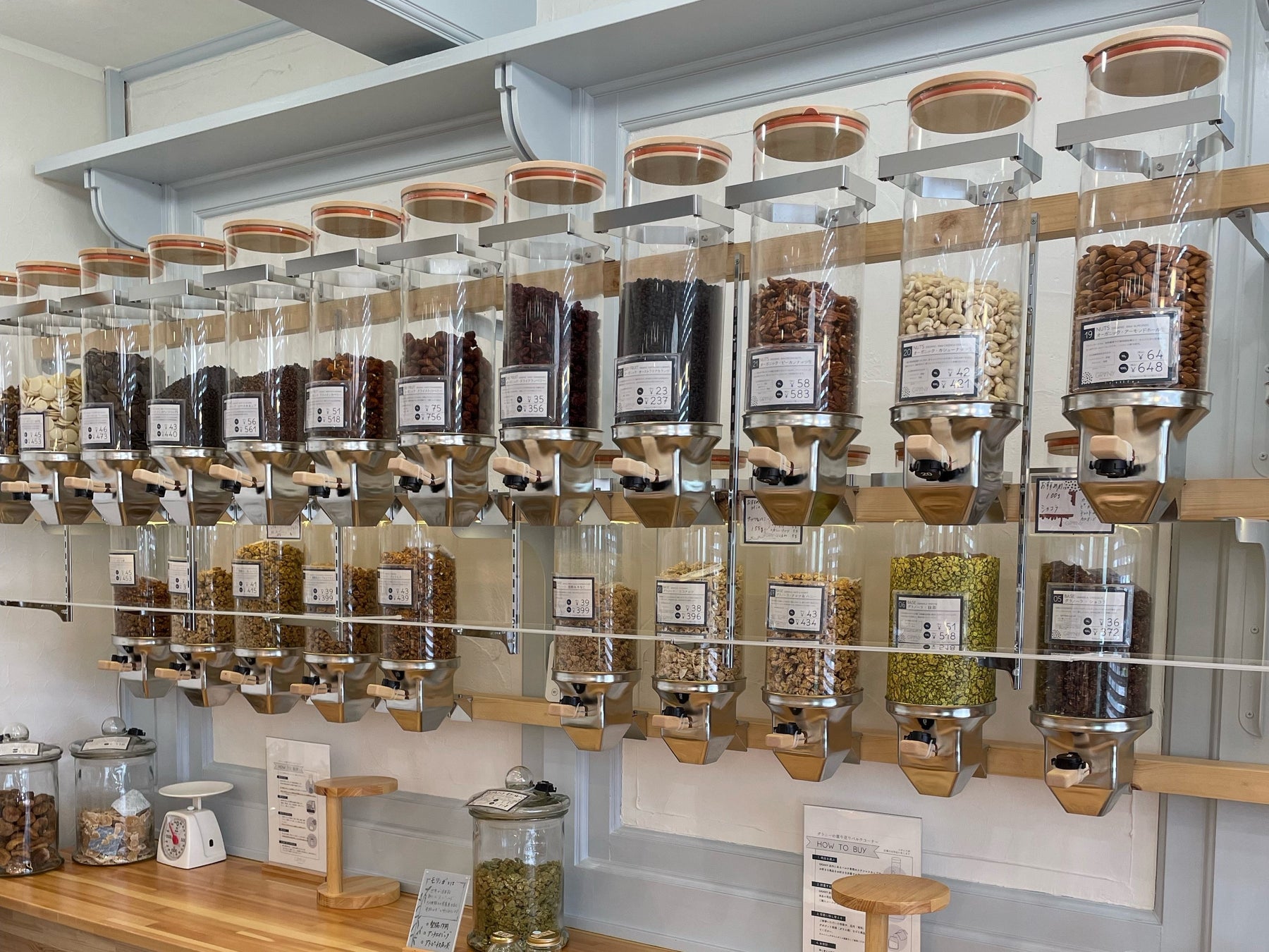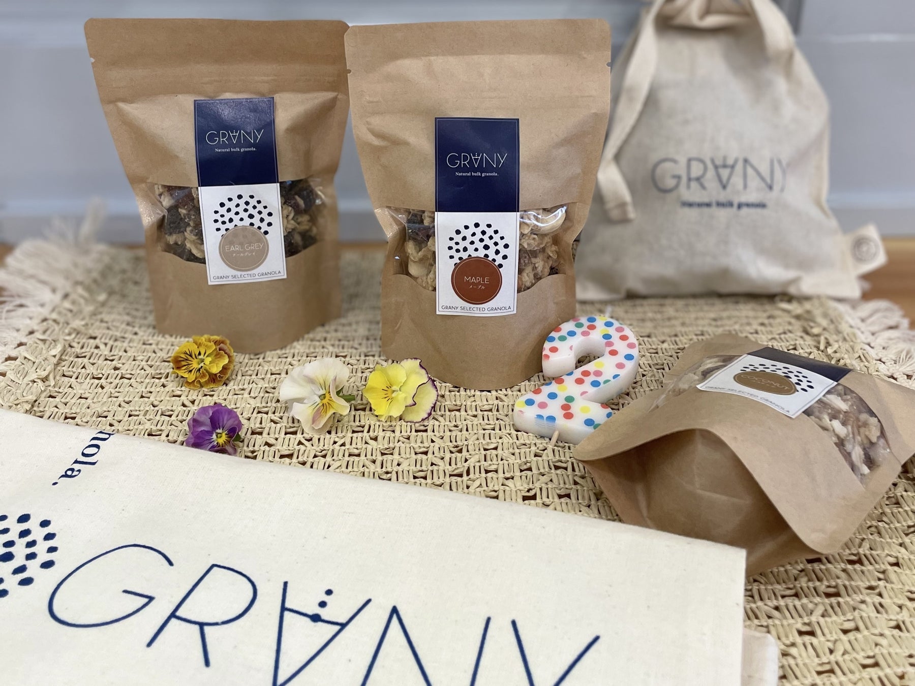 GRANYのグラノーラは素材を吟味し、手作業で丁寧に焼き上げています。また、地産地消のオーガニック野菜や果物、廃棄されてしまう食材をアップサイクルして自社で加工し、お好きな組み合わせで、必要な分だけご購入いただける量り売りシステムで販売提供しています。