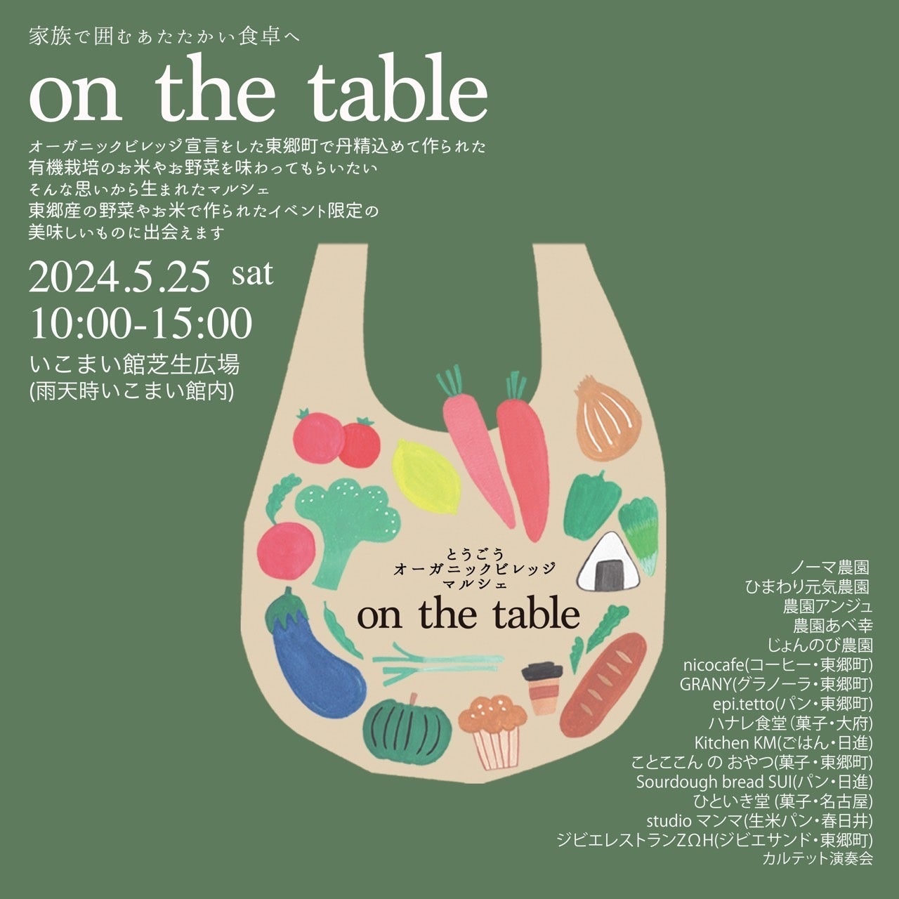 有機農業推進の取り組みとして、同町施設「いこまい館」で初となるオーガニックマルシェが開催されます。東郷町産の有機栽培野菜の販売や、有機食材を使ったお菓子、ランチプレートなどを販売する出店者が集まります!