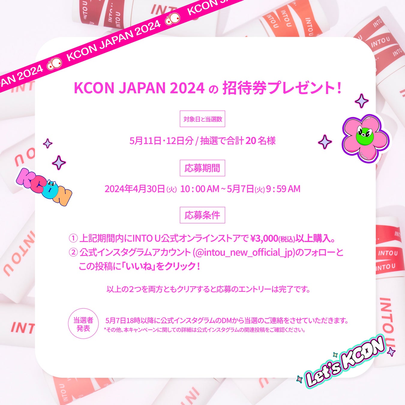 KCON会場のINTO Uの特設ブースはいつもよりお得にお買い物できる様々なサービスもご用意して、皆様のご来場をお待ちしています。詳細は随時、公式ウェブサイトおよび公式インスタグラムで発表をしてまいりますので、ご確認ください。