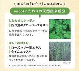 「わたしの髪にいいこと、wicot」をコンセプトとし、頭皮へのいたわりと育毛効果を兼ね揃えたスカルプセラム(薬用育毛剤)を中心に、厳しい基準をクリアしたCOSMOSオーガニック認証のスカルプ&ヘアケアブランドです。