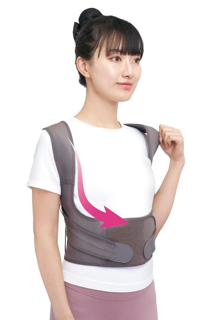 みぞおちをグッと引き上げるために交差ベルトにもこだわり、胸椎が軸になるよう、長さや幅の調整を何度も行いました。