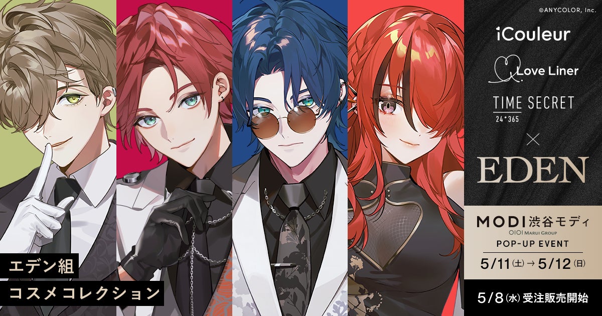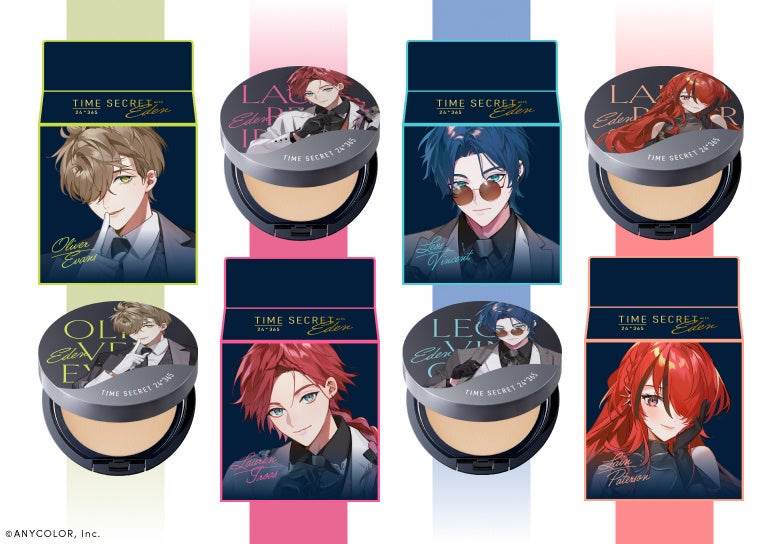 エデン組×iCouleurのアイシャドウパレットに加え、mshが展開する「ラブ・ライナー」とコラボしたリキッドアイライナー、「タイムシークレット」とコラボしたフェイスパウダー、コラボアクリルスタンドを、すべて撮り下ろしビジュアルのデザインにて展開いたします。