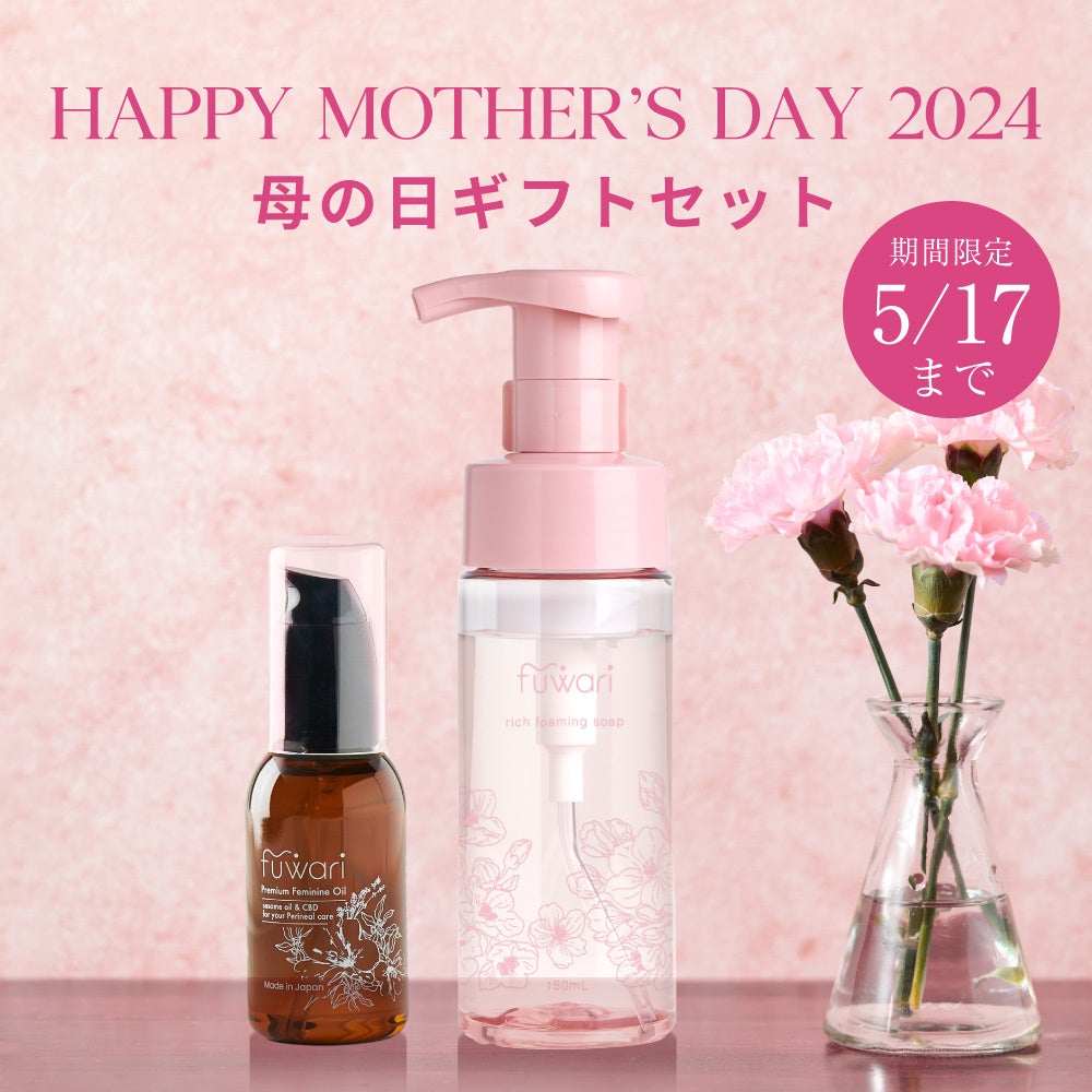 更年期前後の女性のデリケートゾーンの乾燥対策として親しまれているfuwariから、5月1日より『2024母の日ギフトセット』の販売が開始!期間限定で、無料ギフトラッピング&通常価格より17%OFFでお届けいたします。