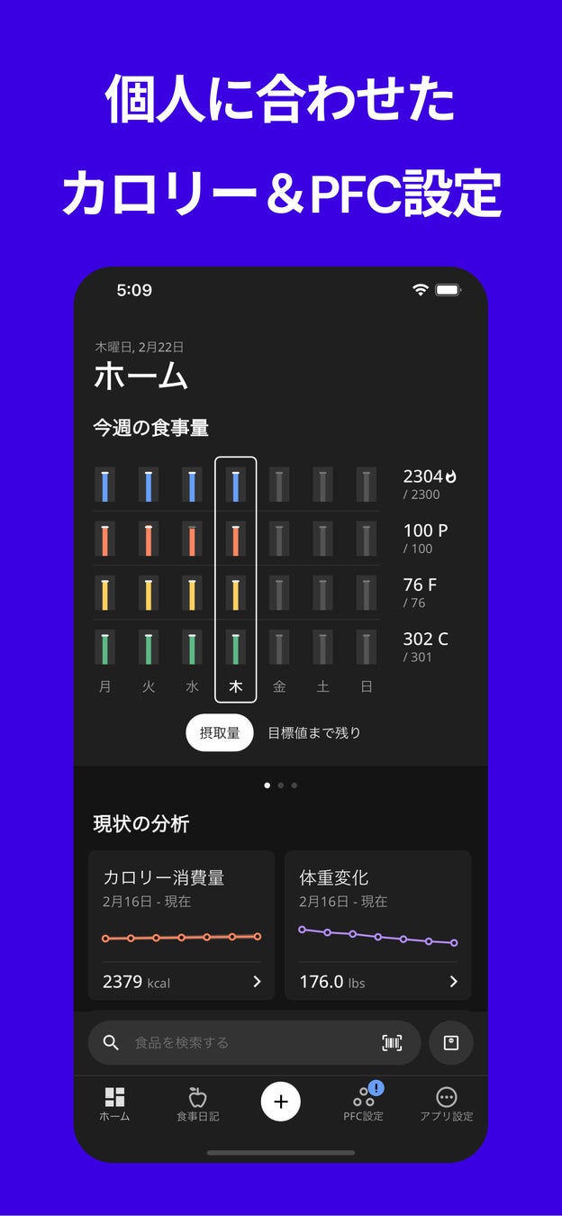 •  個人の目標や好みに基づいた三大栄養素プログラムの設定