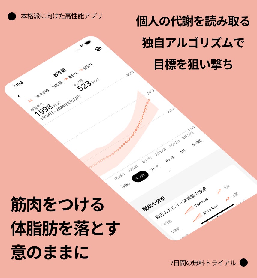 •  個人の代謝の変化に合わせてカロリー消費量を算出