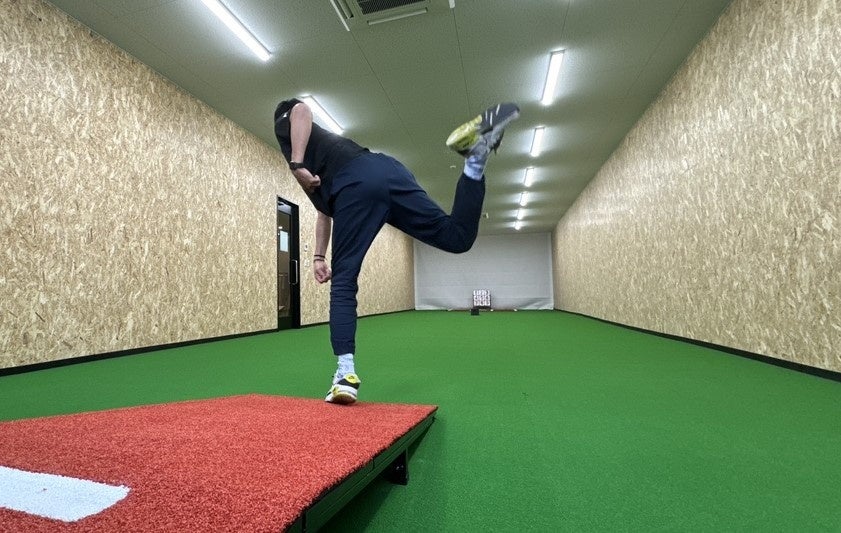 投球分析デバイスRapsodoを導入したピッチングエリアを完備。高精度なカメラを活用し、ボールの速度、軌道、回転数、回転軸、回転効率等をリアルタイムで計測、投球データを収集・分析しプロの視点で開発された信頼性の高いデータを提供します。