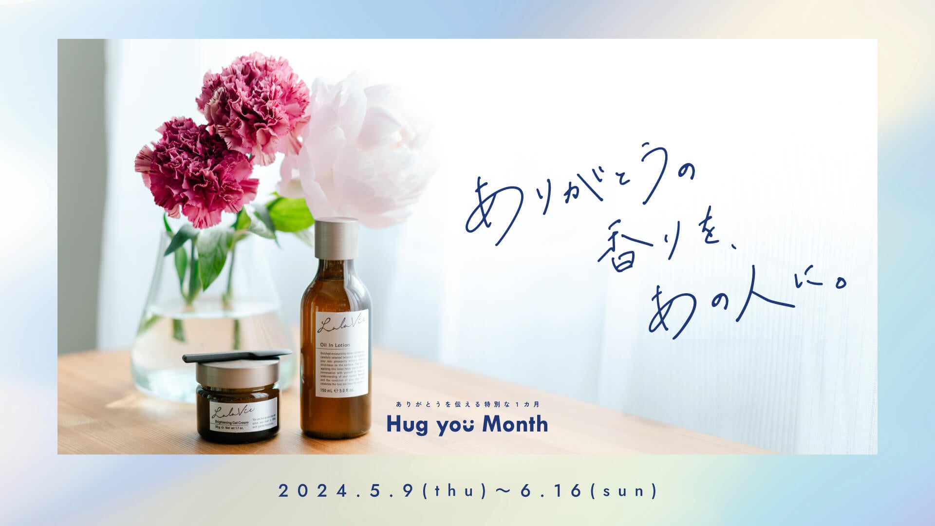 株式会社アンズコーポレーション(本社:大阪市中央区 代表取締役社長:山田昌良)の、「ため息も、疲れた心も、明日に向かう呼吸に変える。」スキンケアブランド『Lala Vie(ララヴィ)』は、感謝の気持ちを伝える特別な1か月間『Hug you Month』を2024年5月9日(木)から6月16日(日)までの約1か月間、各直営店舗及びララヴィ オンラインストアにて実施します。